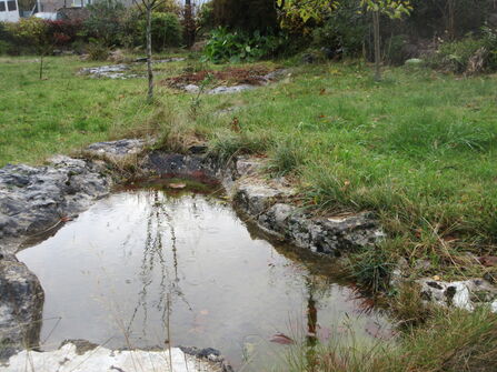 In summer dragonflies (various darters and emperors), pass through regularly - and this summer I found a discarded skin (exuviae), which I identified as being from the nymph of some species of darter, on a rock next to the pond. There are still no plants in the pond, but clearly these larvae are finding something to cling to, and enough other invertebrates to eat. The dragonflies are still regular visitors so I hope they'll breed here again.