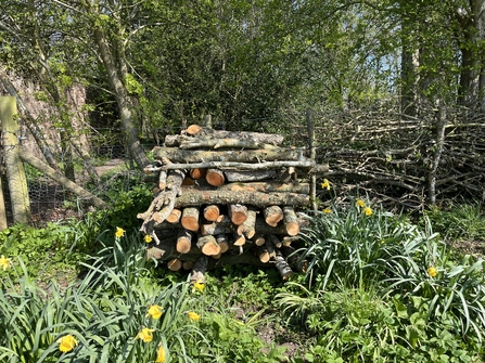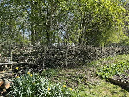 We have wigwams made of dead plant material at the back of the borders, which provides wildlife with a source of shelter, food and nesting sites. We also have dead hedges which help to keep out the deer.