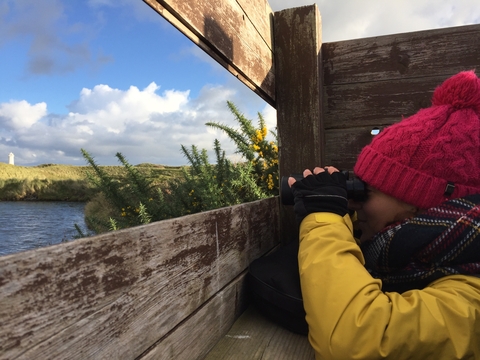 Person bird watching from one of the bird hides at South Walney Nature Reserve