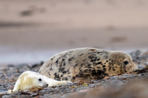 A grey seal mother and pup at South Walney Nature Reserve © Cumbria Wildlife Trust