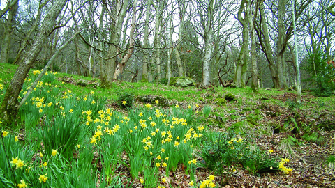 The attractive ground flora includes wood sage, bluebell and wood anemone, reflecting the acidic nature of the underlying Skiddaw slate, which outcrops in some areas.