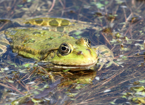 The marsh frog is part of a group of similar species sometimes known as 'green frogs' or 'water frogs', which can be tricky to separate. Other green frogs found in the UK are the edible frog, which is another introduced non-native species with a few scattered populations, and the pool frog - a native species which was driven to extinction in the UK, but has been successfully reintroduced to East Anglia. The marsh frog is generally larger than the other two species.