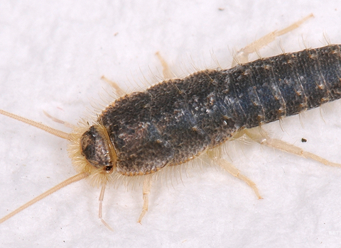 The silverfish is a very primitive, wingless insect, and part of a group known as the bristletails. Silverfish live in houses, where they feed on sugar and starch, which can be found in paper, soap residues and even dust. They particularly like slightly damp places: you are most likely to see them in the bathroom or kitchen.